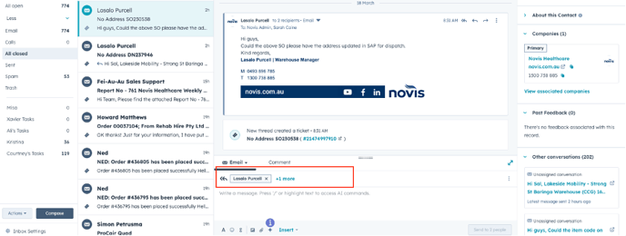 • To enable tracking of when the email is responded to by a customer or an internal Novis representative, the email needs to be handled slightly differently.